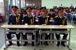 土木01班的付理想同学代表国旗班谈心得体会,“通过这次培训,使我更加懂得了要想成为一名优秀的学生干部,我们在思想上就要明确四个“一”:第一,把自己担负的学生工作当做“一项事业”,从而培养高度的责任感、服务和奉献精神;第二,把自己担负的学生工作当做“一门学问”,从而以严谨好学、实事求是的态度去钻研学习,已达到提升个人素质和能力的目的;第三,把自己担负的学生工作当做“一个天地”,既充分施展自己才能,锻炼自己才干,实现自己理想的天地,从而大胆创新,勇于开拓;第四,把自己担负的学生干部工作当做“一种生活”,一种独特的,不同于他人的大学生活,从而以严谨认真的态度去处理好生活的点点滴滴,以及各种人际关系,使自己成为有理想、有魅力的人。”